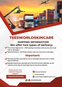 We offer reliable delivery options to ensure your skincare products reach you safely. Please review the delivery options below and choose the one that best suits your needs.